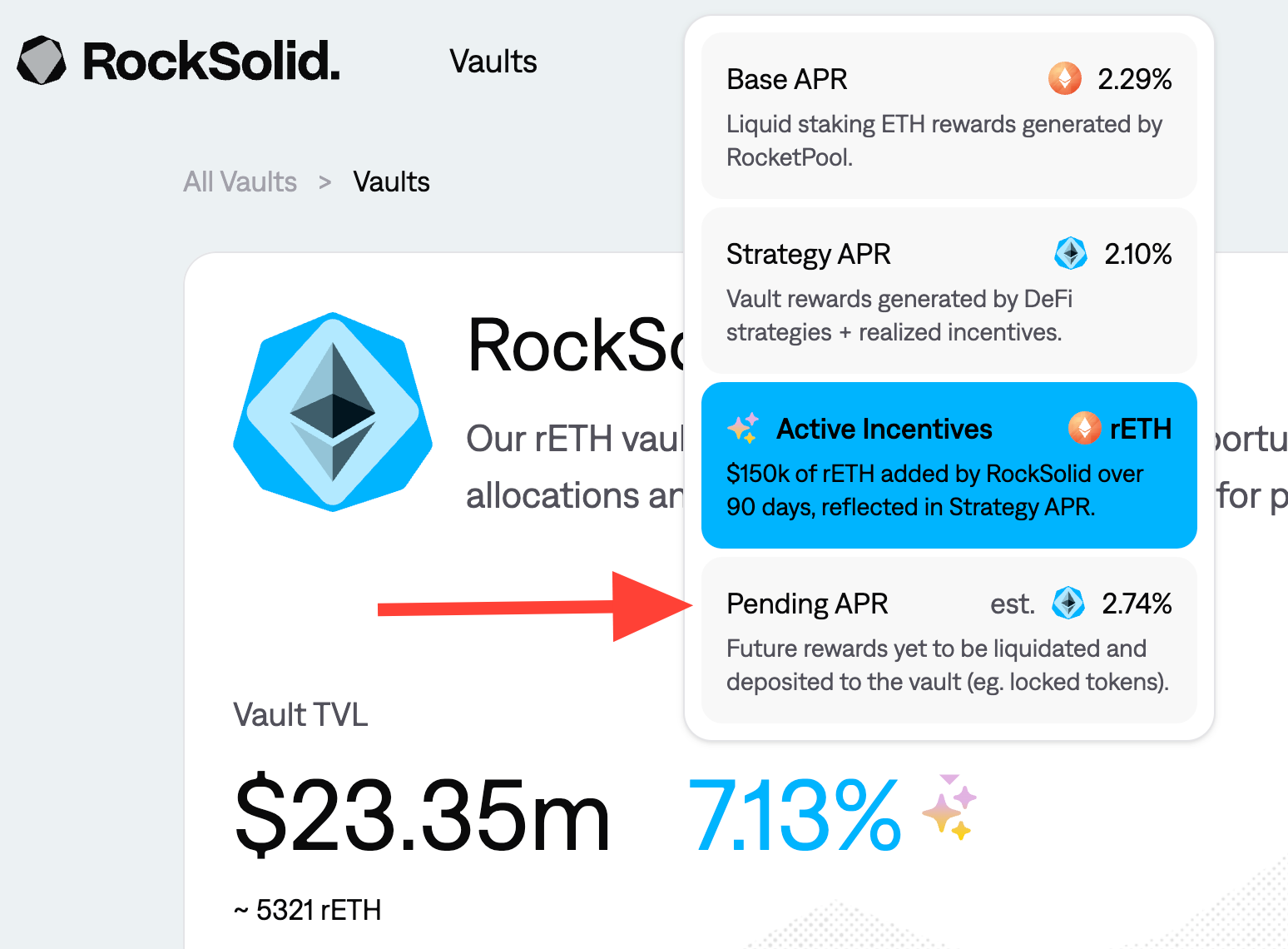First and foremost the RockSolid rETH Vault aims to provide attractive APRs to rETH holders.